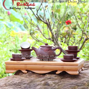 Bộ ấm chén men kem gồm: 1 ấm 6 chén và 7 đĩa kê, 1 bình đựng trà, 1 gạt tàn thuốc lá, 1 bình tráng trà, 1 ống đựng tăm